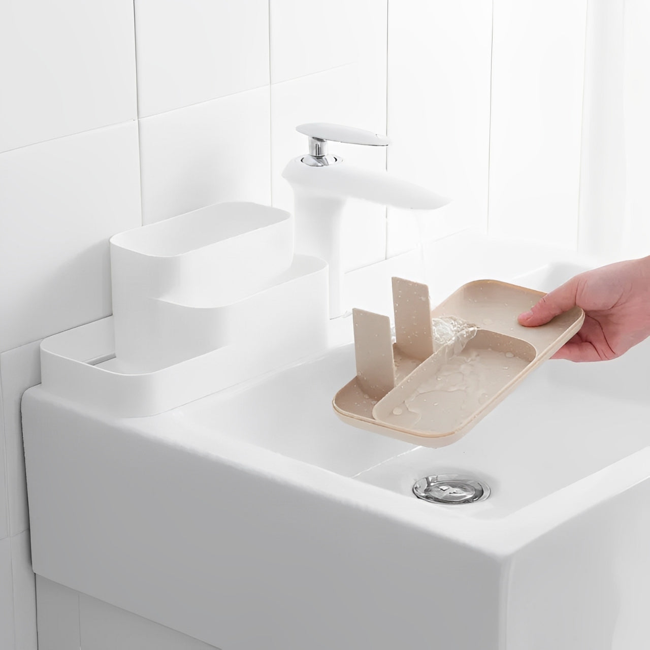 Gemaakt van duurzaam en kunststof, biedt deze organizer een stijlvolle en praktische opbergoplossing voor al je beautyproducten.